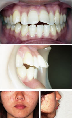 最初の患者様は子供のころからヘッドギアーという装置を使用して、奥歯を後方に移動しました。このため歯を抜かずに治療することができました。