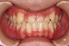 正常な噛み合わせでは上顎の前歯が下顎の前歯に少しかぶさるようになっています。下顎前突は、受け口とも言われるように下顎の前歯が上顎の前歯より突出している状態です。歯に原因が限局される場合と、骨格的な問題を抱えている場合があります。咀嚼機能が低いだけでなく、受け口特有の顔貌や発音障害(サ行、タ行)などの問題もあります。不正咬合の中でも特に早期治療が望ましく、骨格的な受け口は不正咬合の中でも早期治療が最も効果的な症状です。