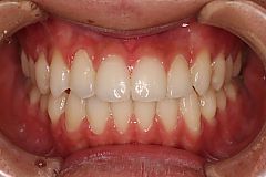 この症例では初診時、下口唇の突出感も目立っていましたが下顎前歯を後退させることで下口唇の突出感も改善し良好な審美性を得ることができました。